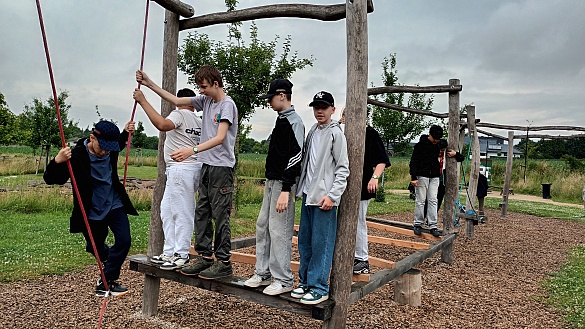 Ende Juni (23.-27. 06.25) fand unsere legendäre Abschlussfahrt des 7. Jahrgangs statt. Der gesamte Jahrgang startete mit Bahn und Bus quer durch Niedersachsen ins schöne Schullandheim Barkhausen, wo wir unser Quartier mitten im Wiehengebirge bezogen. Nach der Belegung der Zimmer durften wir erstmal das Gelände zwischen Wald und Wiese in unmittelbarer Nähe der Hunte auskundschaften, bevor das eigentliche Programm startete.