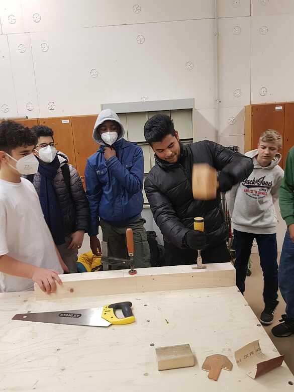 Interessierte Schüler:innen aus unserem 8. Jahrgang durften sich am 01.12.2022 einen Vormittag lang handwerklich ausprobieren. Neben dem Holzbau, wo gute Treffsicherheit und starke Muskeln von unseren Schüler:innen erwartet wurden, konnten präzise Schnitte und gradlinige Tapizierfähigkeiten erprobt werden. Zudem standen Mauerbau und Pflastern mit der Wasserwaage auf dem Programm - alle waren begeistert dabei.