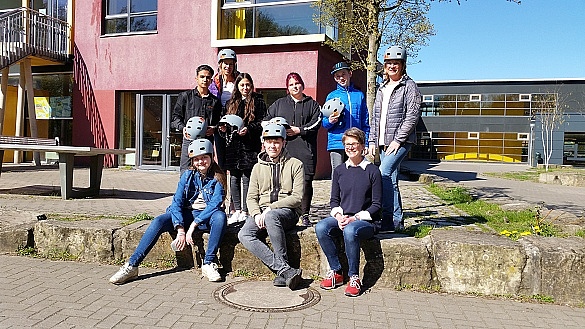 Die Deutsche Kindergeldstiftung hat uns in dieser Woche zwölf Fahrradhelme gespendet. Da die Klassen der Oberschule im Park regelmäßig Fahrradtouren durchführen, leider aber nicht alle Schüler:innen Fahrradhelme besitzen, ist damit nun die Sicherheit erhöht. In einem modernen matten Grauton gehalten und mit einem poppigen farbigen Fleck fanden die Schüler:innen die Fahrradhelme sehr stylisch und modern. Alle freuen sich auf die Zeit nach Corona, wenn in den Klassen wieder alle zusammen eine Fahrradtour machen können.