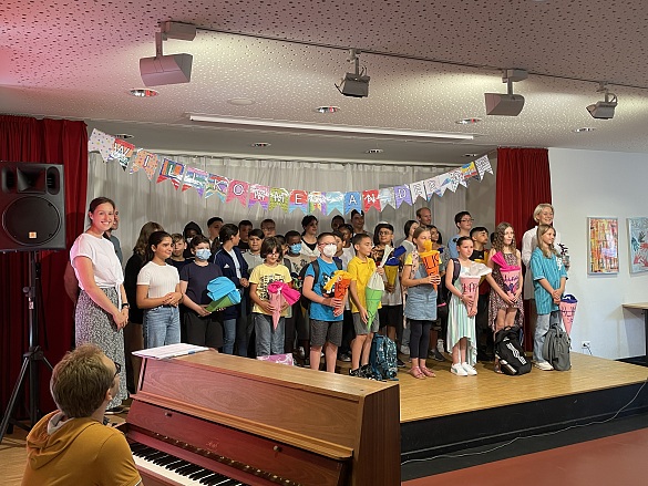 Wegen coronabedingter Vorsichtsmaßnahmen wurde die Veranstaltung auf die drei neuen Klassen aufgeteilt. Die jeweiligen Paten aus den 7. Klassen überreichten allen neuen Schüler:innen selbstgebastelte Schultüten mit allerlei Süßigkeiten und nützlichen Schulmaterialien. Danach ging es für die Neulinge mit ihren Klasenlehrer:innen noch kurz in die neuen Klassen, wo schon nach dem ersten Kennenlernen auch schon erste Fragen beantwortet wurden.