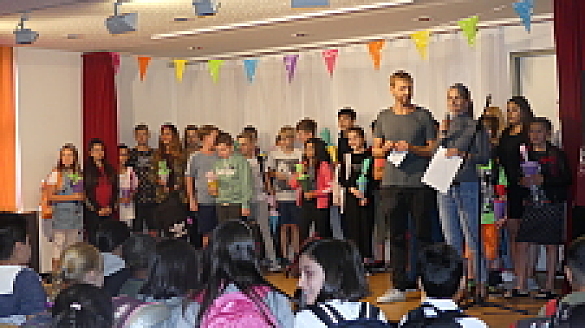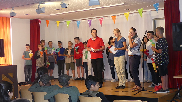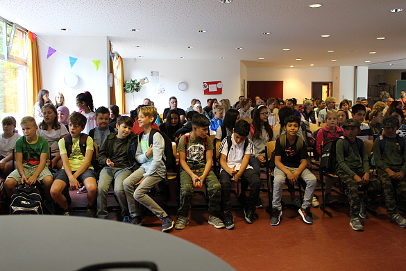Nach den Sommerferien haben wir nun erstmalig vier neue fünfte Klassen eingeschult. Die Schuleiterin Frau Steinhauer begrüßte die neuen Mitschüler:innen ganz herzlich. Nach einer Gesangseinlage hießen auch die Patenklassen des siebten Jahrgangs die neuen Fünftklässler:innen willkommen und nachdem sie ihre neuen Klassenlehrer:innen kennengelernt haben, konnten sie die für sie neuen Räume begutachten und anfangen, sich einzurichten.