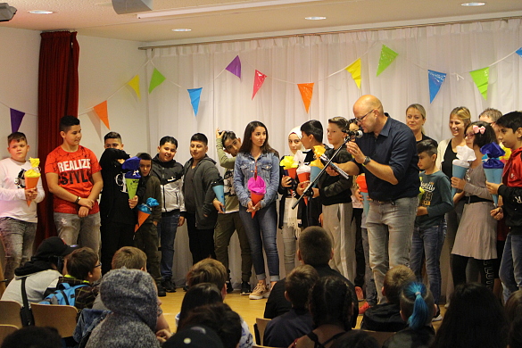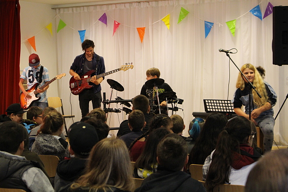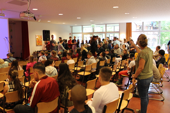 Am Freitag, den 16.08.19, sind die neuen fünften Klassen in unserer Schule angekommen. Nachdem die ersten Eltern mit ihren Kindern kamen, ging es um 10:30 Uhr los. Die Einschulungsfeier wurde von der Schulleiterin Frau Steinhauer eröffnet und auch die Jahrgangsleiterin Frau Unger begrüßte die neuen Schüler:innen. Nachdem Sophie Raschke das Lied „Faded“ sang und die Schulband „Seven Nations Army“ spielte, wurden die neuen Schüler:innen eingeteilt und gingen mit ihren neuen Klassenlehrer:innen und ihren Patenkindern in die neuen Klassenräume.