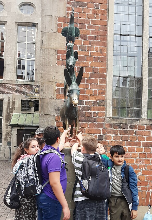 Wie alt ist eigentlich der Bremer Dom? Wo kann man sich zu Loriot auf die Bank setzen? Wer ist der Bürgermeister von Bremen? Diesen und vielen weiteren Fragen durften sich Schüler:innen des 5. Jahrgangs in der Bremer Altstadt stellen. In Kleingruppen - ausgerüstet mit einer markierten Stadtkarte, ein paar Euros und einem Aufgabenheft – zogen die Kinder gemeinsam mit den Lehrkräften von Team 5 los, um sich von einer Aufgabe zur nächsten vorzuarbeiten.