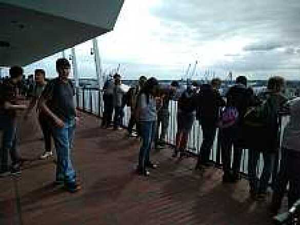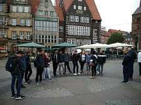 Am Wochenende haben die Gastfamilien dann verschiedene private Ausflüge mit ihren Austauschschüler:innen unternommen. So sind einige zum Serengetipark oder Heidepark gefahren, haben sich ein Werderspiel im Stadion angeguckt oder gingen shoppen in der Waterfront. Am Montag haben wir eine Stadtführung durch die Bremer Altstadt unternommen. Am darauffolgenden Tag sind wir dann nach Hamburg gefahren. Dort haben wir die Erbphilharmonie besucht und sind dort auf die Aussichtsplattform gegangen. Hier hatten die Schüler:innen einen wunderbaren Ausblick auf den Hafen, die Landungsbrücken, die Alster sowie die Speicherstadt. Wir haben uns auch noch die Nikolaikirche angeschaut.