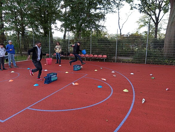 Die Schüler:innen des gesamten 8. Jahrgangs sammelte an diesem Tag fleißig Kilometer, indem sie die 5km-Strecke entlang der Weser bis zum Sportgarten zurücklegten - und wirklich viele liefen im Anschluss noch eine zusätzliche 3km-Bonus-Runde mit den U23-Stars von SV Werder Bremen.